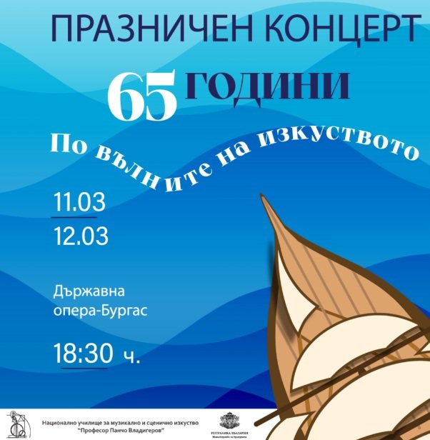 На 11 и 12 март Държавна опера – Бургас ще бъде домакин на юбилеен концерт на Националното училище за музикално и сценично изкуство „Проф. Панчо Владигеров“. Събитието отбелязва 65 години от създаването на училището и ще събере на сцената ученици от всички специалности.