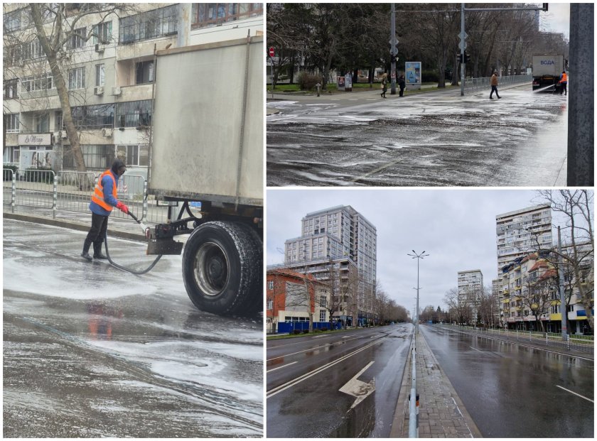 Специализирани екипи обработиха пътното платно и прилежащите площи в участъка между ул. „Дунав“ и бул. „Сан Стефано“ като част от регулярната програма на общината за поддържане на чистотата в града.