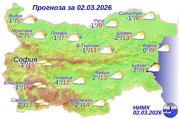 По Черноморието също ще бъде предимно слънчево. В сутрешните часове на отделни места ще има намалена видимост. Максималните температури ще достигнат 7°–9°. Морската вода е между 4° и 7°, а вълнението ще бъде около 2 бала.